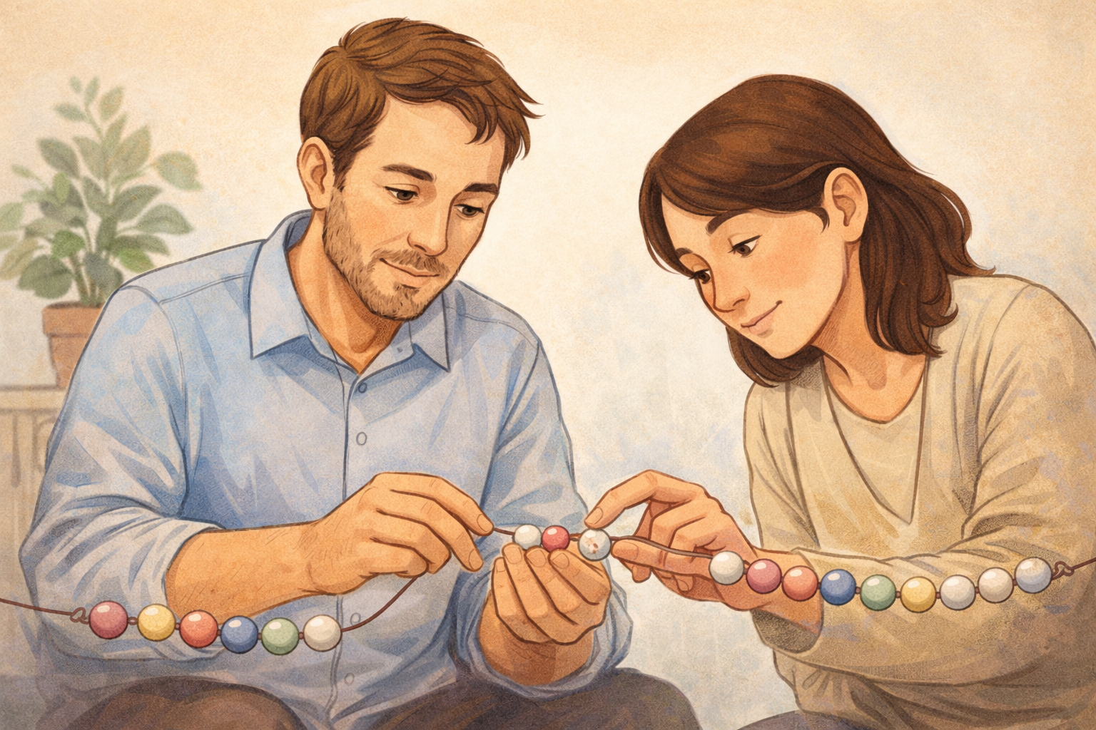 La thérapie LI-ICV consiste à enfiler de nouveau cette perle sur le fil, au bon endroit dans l’histoire de votre vie. On ne supprime pas la perle, on ne l’efface pas, on l’aide à retrouver sa place dans la continuité du fil du temps.